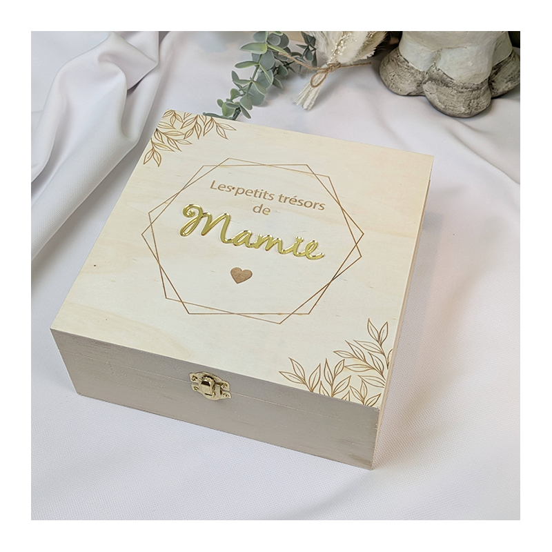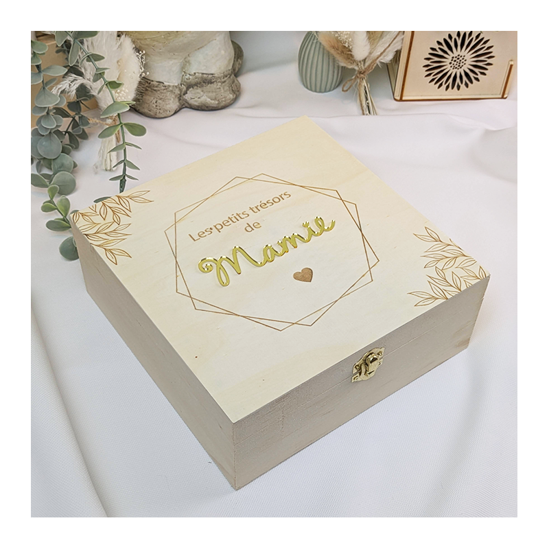 Cette boîte en bois, élégante et intemporelle, est parfaite pour ranger fils de couture, bijoux, cartes ou tout autre précieux souvenir.