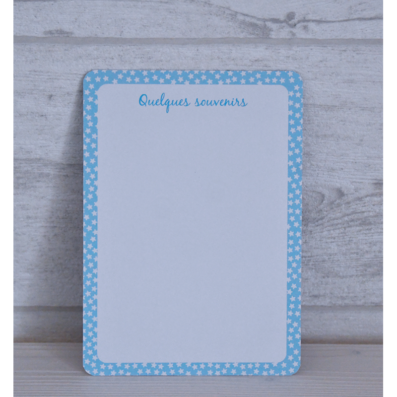 Au dos de la carte, vous pourrez noter un souvenir, une anecdote… que vous aurez plaisir à partager avec votre entourage ou avec votre bébé quand il aura grandi.